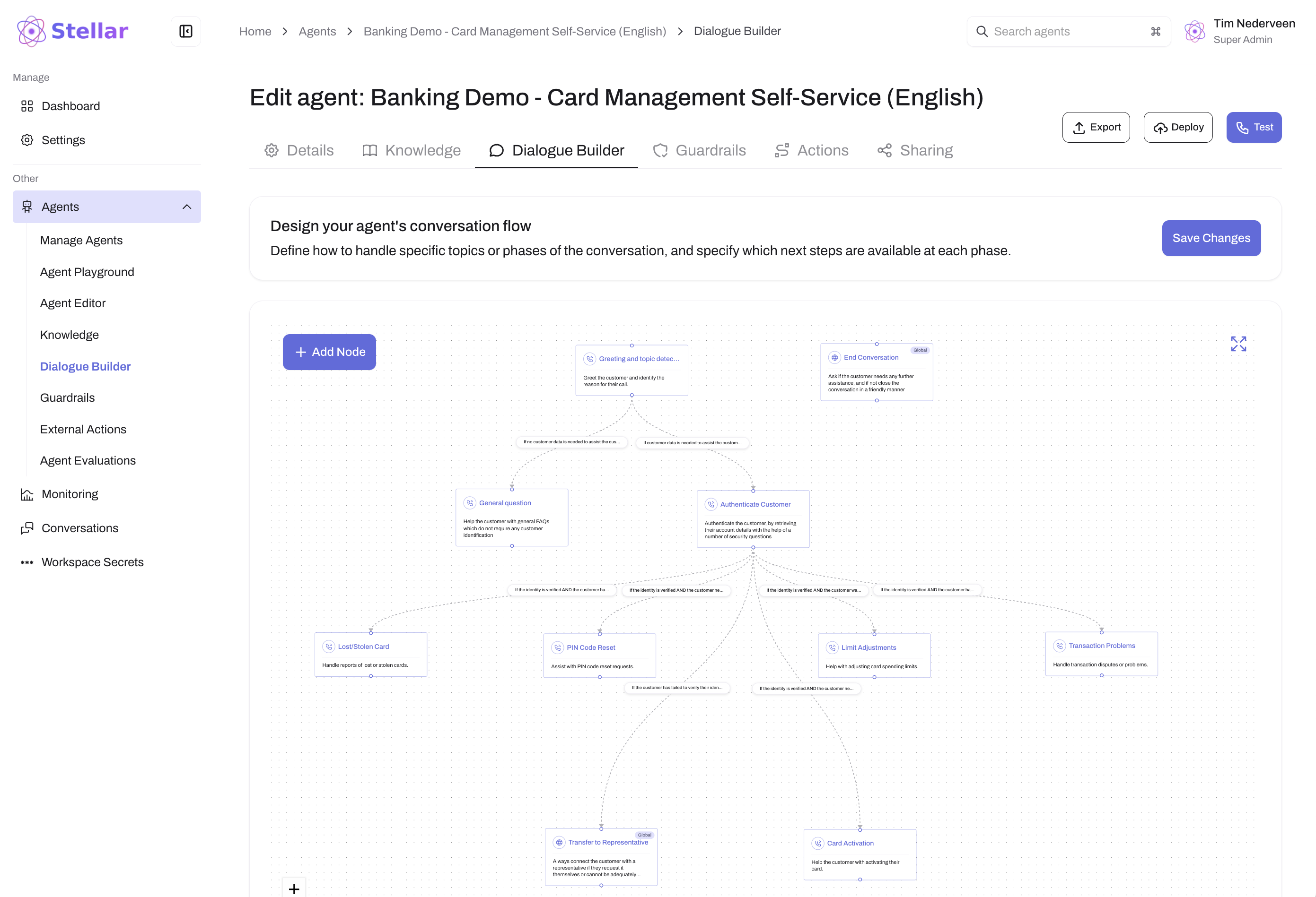 Next, instruct your agent how to resolve different types of customer requests by giving it dedicated instructions per conversation topic. Stellar's Dialogue Builder makes it easy and intuitive to provide specific instructions for each individual type of request.